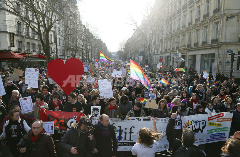 仏パリで同性婚支持の大規模デモ、合法化法案の議会提出控え