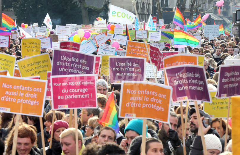 仏パリで同性婚支持の大規模デモ、合法化法案の議会提出控え