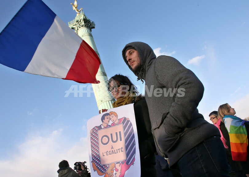 仏パリで同性婚支持の大規模デモ、合法化法案の議会提出控え