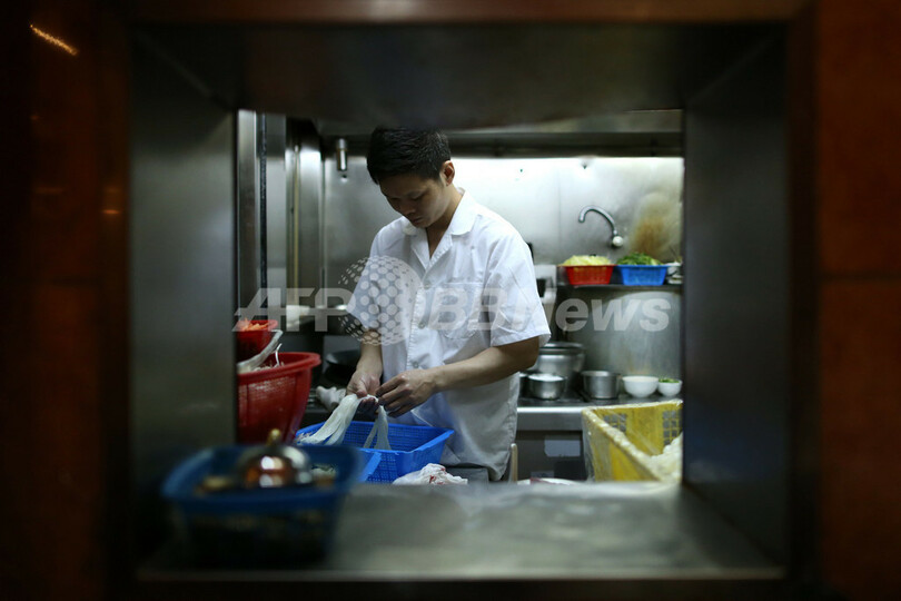 添好運(Tim Ho Wan)と彭慶記(Pang's Kitchen)、それに何洪記の3店舗が「世界で最も低価格で、最も手頃な1つ星の体験を提供する」とエリス氏。料理の価格は1皿30~60香港ドル(約350~700円)だ。(c)AFP/Aaron Tam