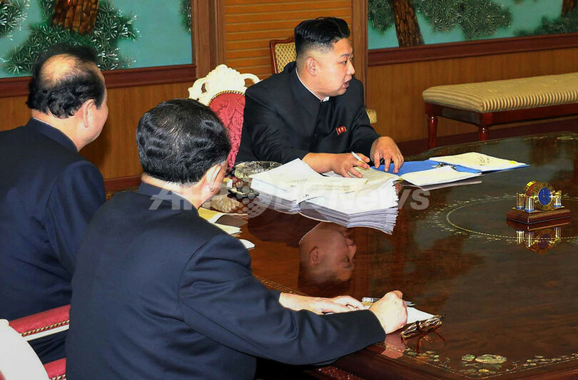 2012年12月の長距離ロケット発射に対して、国連安全保障理事会(UN Security Council)が制裁強化決議を採択したのを受け、北朝鮮は3度目となる核実験を実施する構えをみせている。金正恩(キム・ジョンウン、Kim Jong-Un)第1書記は軍当局者らとの会合で、「実質的で強力な国家的重大措置を取る」との決意を示したと報じられ、差し迫った核実験をめぐる臆測が飛び交っている。(c)AFP