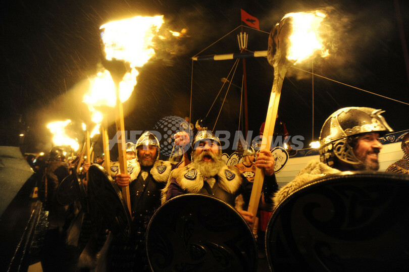 ニュース ライフ バイキングの火祭り、英シェトランド諸島 2013年1月30日 10:50 発信地:ラーウィック/英国 [ ヨーロッパ 英国 ] このニュースをシェア ‹ › ❮ 1/32 ❯ 英シェトランド諸島(Shetland Islands)のラーウィック(Lerwick)で29日、毎年恒例のスカンディナビア系バイキングの威光を祝う祭典「ウップヘリーアー(Up Helly Aa)」が開催された。バイキングの衣装を身にまとった約1000人の参加者が町中を行進し、夕暮れ時には「ロングボート(バイキングが使った帆船)」に燃え立つたいまつを投げ込み、火の祭典を楽しんだ。写真は、たいまつのをかかげる参加者(2013年1月29日撮影)。(c)AFP/ANDY BUCHANAN 画像作成中 ! 【1月30日 AFP】英シェトランド諸島(Shetland Islands)のラーウィック(Lerwick)で29日、毎年恒例のスカンディナビア系バイキングの威光を祝う祭典「ウップヘリーアー(Up Helly Aa)」が開催された。バイキングの衣装を身にまとった約1000人の参加者が町中を行進し、夕暮れ時には「ロングボート(バイキングが使った帆船)」に燃え立つたいまつを投げ込み、火の祭典を楽しんだ。(c)AFP ライフ 一覧へ> メディア・報道関係・法人の方向け 写真・動画 購入のお問合せ>