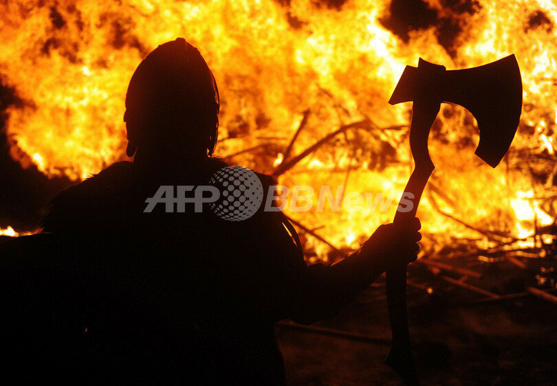 ニュース ライフ バイキングの火祭り、英シェトランド諸島 2013年1月30日 10:50 発信地:ラーウィック/英国 [ ヨーロッパ 英国 ] このニュースをシェア ‹ › ❮ 2/32 ❯ 英シェトランド諸島(Shetland Islands)のラーウィック(Lerwick)で29日、毎年恒例のスカンディナビア系バイキングの威光を祝う祭典「ウップヘリーアー(Up Helly Aa)」が開催された。バイキングの衣装を身にまとった約1000人の参加者が町中を行進し、夕暮れ時には「ロングボート(バイキングが使った帆船)」に燃え立つたいまつを投げ込み、火の祭典を楽しんだ。写真は、たいまつの火で燃えるロングボートの前に立つ参加者(2013年1月29日撮影)。(c)AFP/ANDY BUCHANAN 画像作成中 ! 【1月30日 AFP】英シェトランド諸島(Shetland Islands)のラーウィック(Lerwick)で29日、毎年恒例のスカンディナビア系バイキングの威光を祝う祭典「ウップヘリーアー(Up Helly Aa)」が開催された。バイキングの衣装を身にまとった約1000人の参加者が町中を行進し、夕暮れ時には「ロングボート(バイキングが使った帆船)」に燃え立つたいまつを投げ込み、火の祭典を楽しんだ。(c)AFP ライフ 一覧へ> メディア・報道関係・法人の方向け 写真・動画 購入のお問合せ>