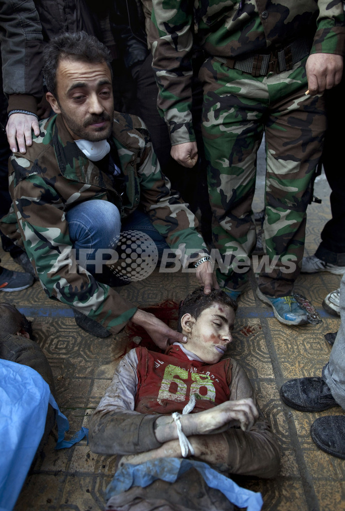 一方、ある治安当局者は「テロリスト」(シリア政府は反体制派をこう呼ぶ)の犯行だと述べ、犠牲者は反体制派が支配するブスタン・アルカスル(Bustan al-Qasr)地区で拉致された住民だとし、家族が解放の交渉を行ったが、夜のうちに殺害されたと語った。