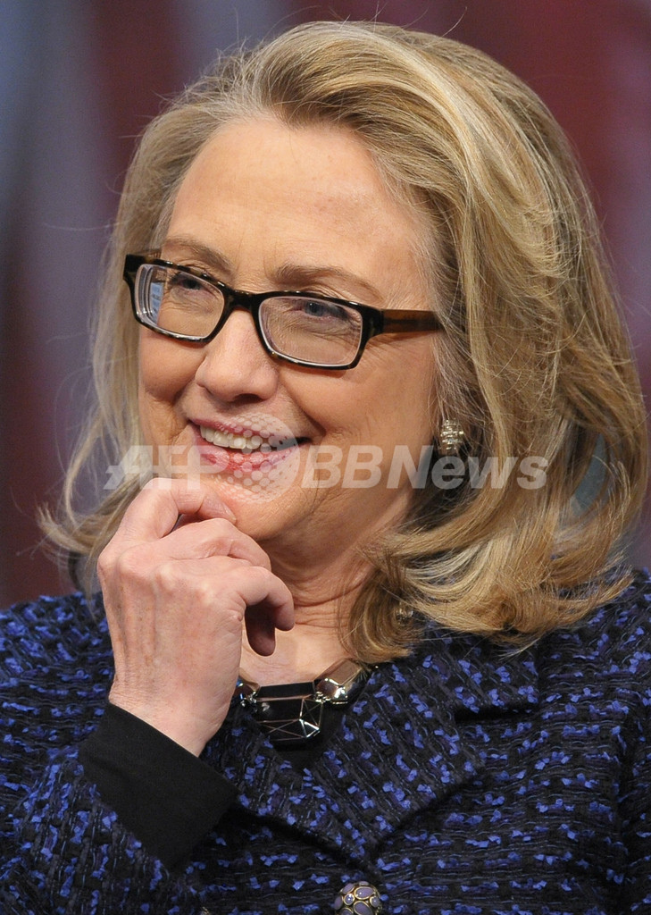 続いて米テレビネットワーク各社とのインタビューが立て続けに行われた。米NBC Newsのインタビューで大統領選への出馬の可能性について聞かれたクリントン長官は、脳振とうを起こしたり、血栓が見つかるなどした最近の健康状態について触れ、出馬を検討する場合、それが今後の決断に「影響を及ぼすことは全くない」と述べた。(c)AFP