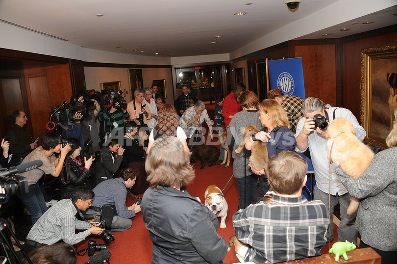 写真は、アメリカンケンネルクラブがニューヨーク(New York)で開いた人気犬種発表の記者会見に詰め掛けた記者たち(2013年1月30日撮影)。(c)AFP/Getty Images for the American Kennel Club/Gary Gershoff