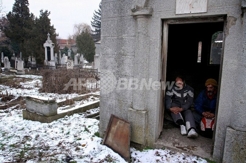 【2月4日 AFP】肩に巻き付けたピンク色の薄い「綿入れ」と錆びたひつぎ3基と共に、ブラチスラフ・ストイコビッチさん(40)は今日もまた凍てつくセルビアの夜を過ごす。暮らしているのは同国南部の都市ニシュ(Nis)にある荒れ果てた市立墓地の墓穴の中。友人のアレクサンダル・ディジッチさん(53)だけが、ここで「生きたまま」墓場暮らしをする仲間だ。