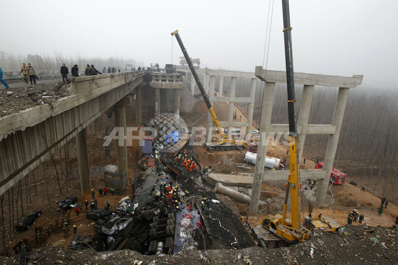 【2月1日 AFP】(一部更新、写真追加)中国国営メディアの報道によると、同国河南(Henan)省の高速道路で1日、花火を積んだトラックが走行中に爆発して橋が崩落し、少なくとも26人が死亡した。