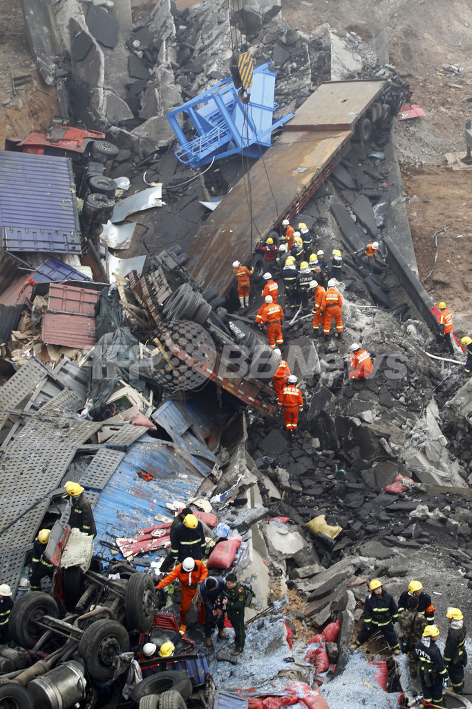 【2月1日 AFP】(一部更新、写真追加)中国国営メディアの報道によると、同国河南(Henan)省の高速道路で1日、花火を積んだトラックが走行中に爆発して橋が崩落し、少なくとも26人が死亡した。
