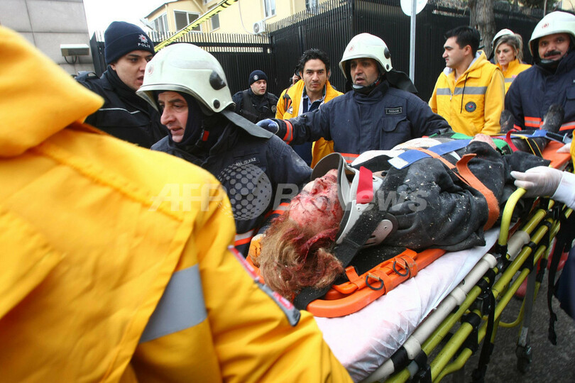 爆発が起きたのは、同大使館の従業員通用口にある検問所。トルコのムアメル・ギュレル(Muammer Guler)内相が報道陣に語ったところによると、3人いた警備員のうち1人が死亡、残る2人が負傷したほか、女性ジャーナリストが重傷を負った。