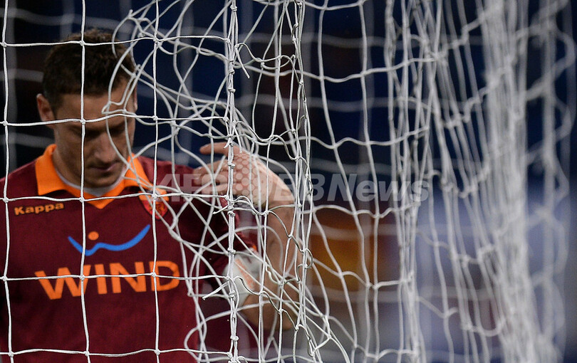 落胆した様子を見せるASローマのフランチェスコ・トッティ(Francesco Totti、2013年2月1日撮影)。(c)AFP/FILIPPO MONTEFORTE