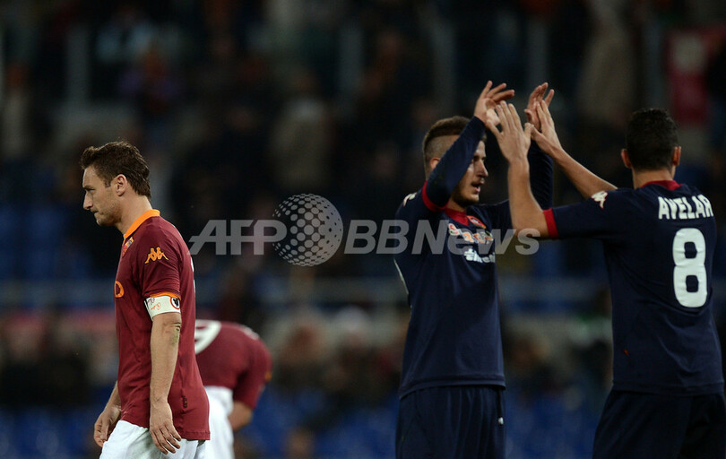 試合に敗れ、落胆した様子でピッチを後にするASローマのフランチェスコ・トッティ(Francesco Totti、2013年2月1日撮影)。(c)AFP/FILIPPO MONTEFORTE