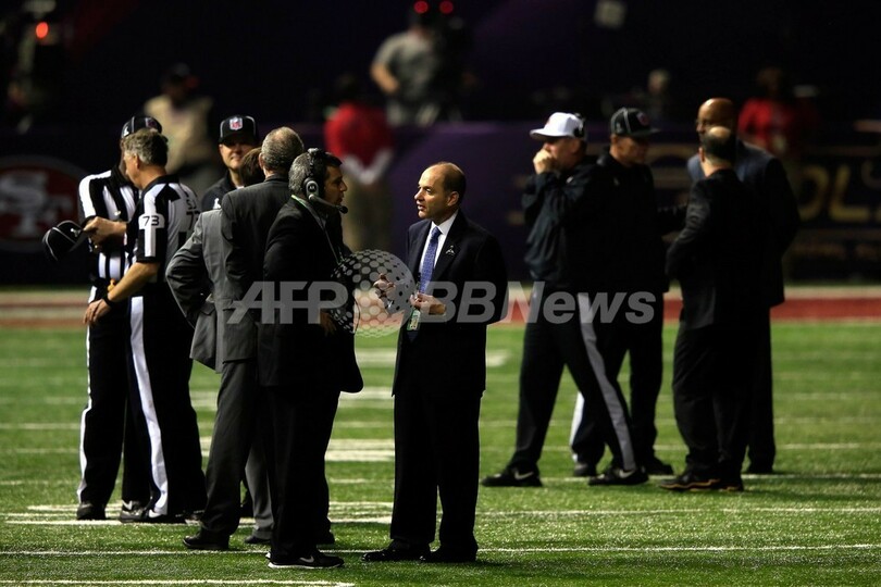 米テレビ局CBSは、スタジアムへの電力供給が断たれため停電したとの審判団の説明を報じている。(c)AFP