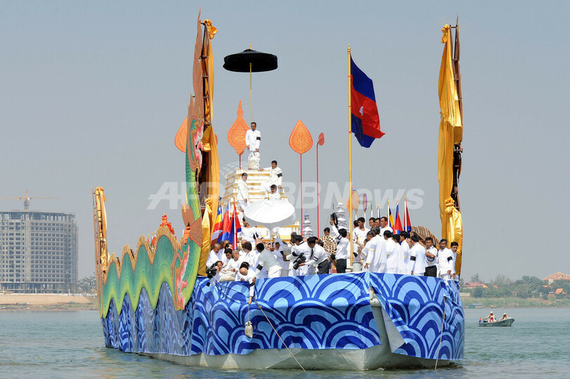 シアヌーク前国王の遺灰、メコン川にまかれる カンボジア