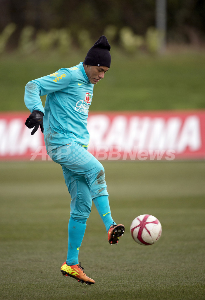練習に臨むブラジルのネイマール(Neymar da Silva Santos Junior、2013年2月5日撮影)。(c)AFP/ADRIAN DENNIS