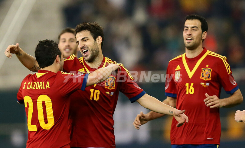 迎えた後半6分、スペインはジェラール・ピケ(Gerard Pique)のパスに走り込んだペドロの得点で勝ち越しに成功すると、同29分にはセスクのクロスから再びペドロが追加点を挙げた。ペドロはスペイン代表の最近6試合で9得点を記録している。(c)AFP