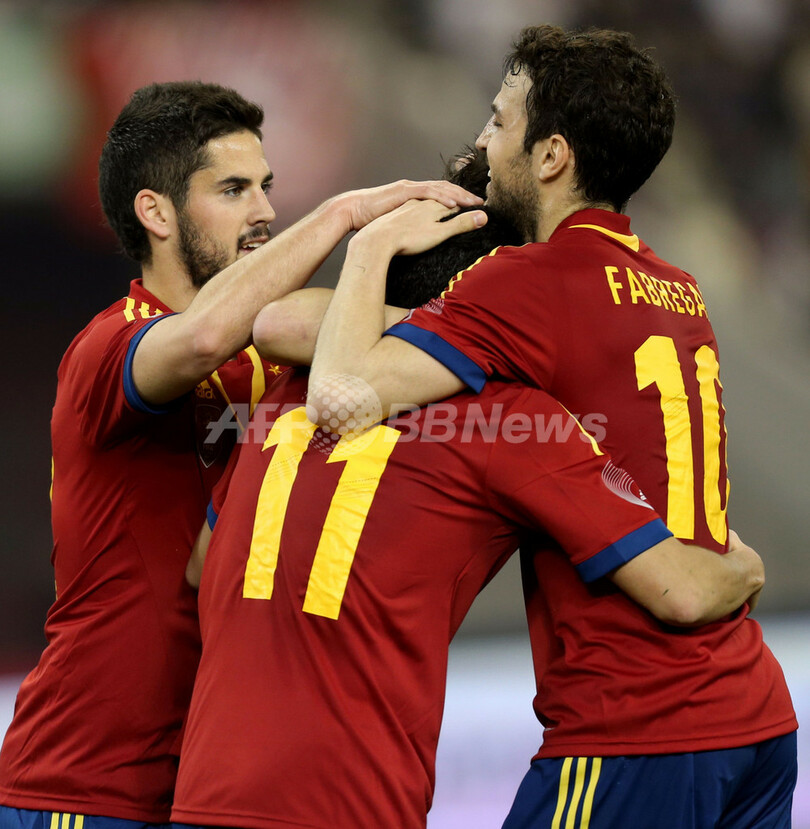迎えた後半6分、スペインはジェラール・ピケ(Gerard Pique)のパスに走り込んだペドロの得点で勝ち越しに成功すると、同29分にはセスクのクロスから再びペドロが追加点を挙げた。ペドロはスペイン代表の最近6試合で9得点を記録している。(c)AFP