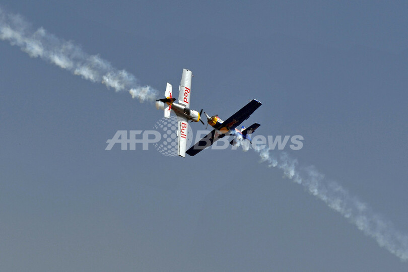 写真は、会場上空でズリーン(Zlin)Z50型機を使った曲芸飛行を披露するチェコのアクロバット飛行隊「フライング・ブルズ(Flying Bulls)」(2013年2月6日撮影)。(c)AFP/Manjunath KIRAN