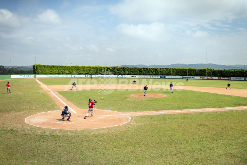 【2月8日 AFP】ブラジル・サンパウロ(Sao Paulo)から60キロメートル西のイビウーナ(Ibiuna)市にあるヤクルト野球アカデミー(Yakult training center)で、米大リーグ野球機構(MLB)の国際部が主催するエリートキャンプが行われ、ブラジルとアルゼンチン、ペルーから集められた15歳から17歳の選手たちが、MLBのコーチやブラジル代表野球チームと一緒に10日間ほどの日程で練習を行った。(c)AFP
