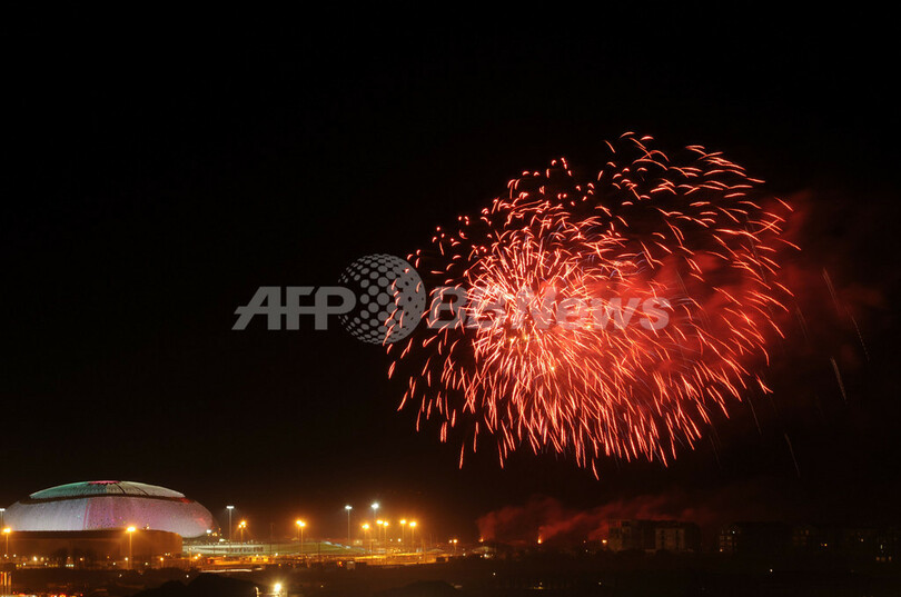 写真はソチ上空に打ち上げられたカウントダウン開始を祝う花火(2013年2月7日撮影)。(c)AFP/MIKHAIL MORDASOV