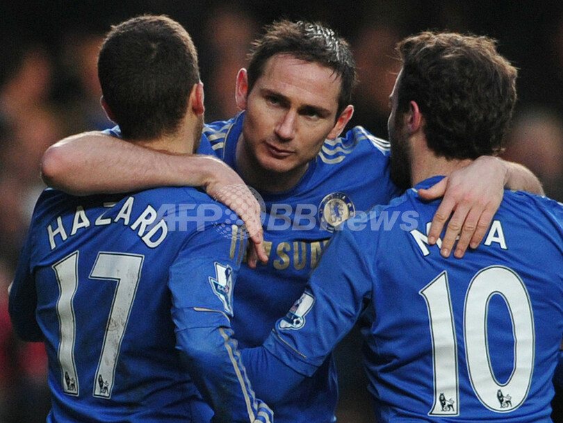 僅差の勝利になるかと思われたが、チェルシーは同42分にフランク・ランパード(Frank Lampard)が、ボビー・タンブリング(Bobby Tambling)氏が持つクラブ歴代通算得点記録の202に迫る通算198得点目となるゴールを決めリードを広げると、終了間際には途中出場のマルコ・マリン(Marko Marin)が駄目押し点を挙げた。(c)AFP/Darren Witcoop