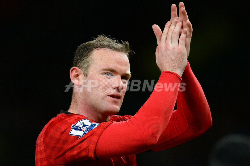 試合に勝利してサポーターの歓声に応えるマンチェスター・ユナイテッドのウェイン・ルーニー(Wayne Rooney、2013年2月10日撮影)。(c)AFP/ANDREW YATES
