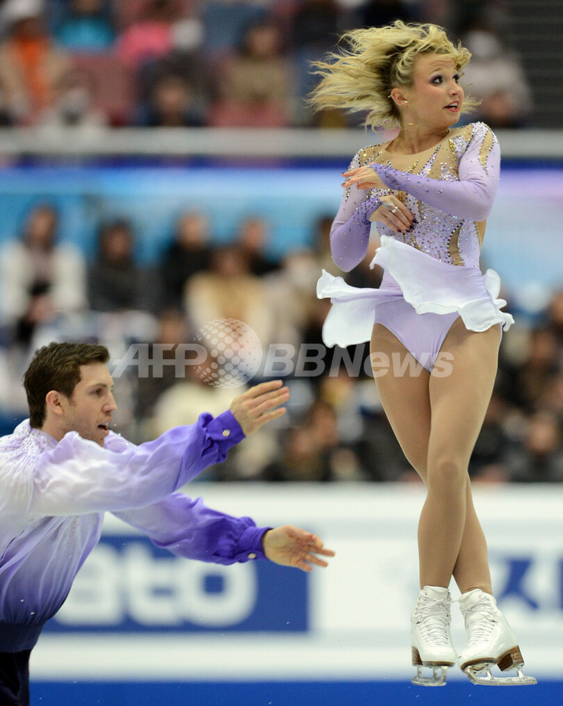 演技に臨むカーステン・ムーア・タワーズ/ディラン・モスコビッチ組(2013年2月10日撮影)。(c)AFP/TOSHIFUMI KITAMURA