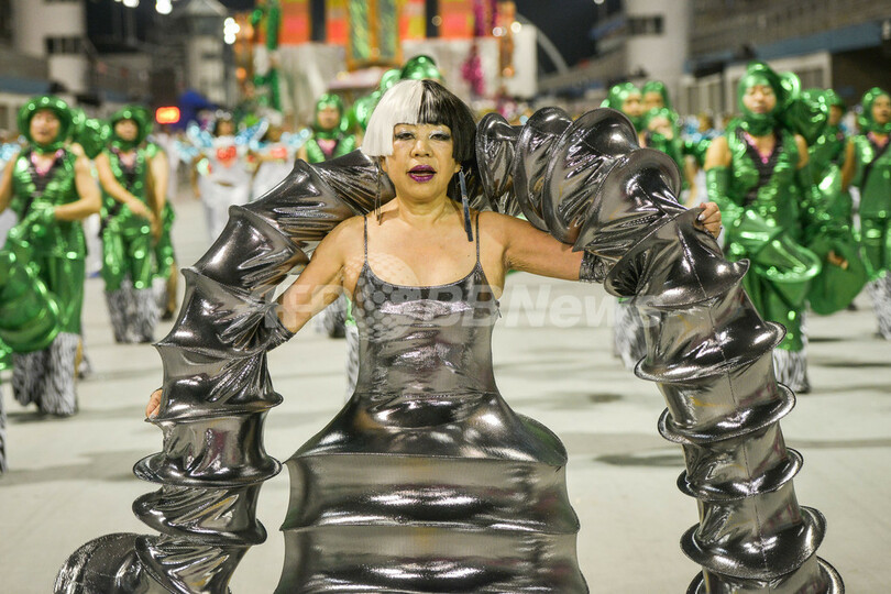 【2月13日 AFP】ブラジル・サンパウロ(Sao Paulo)のカーニバル最終日の12日、日本のファッションデザイナー、コシノジュンコ(Junko Koshino)さんが、自らデザインした衣装を身に付け、主会場サンボドロモ(Sambodrome)で行われたパレードに参加した。コシノさんはサンバチーム「バロッカゾナスル(Barroca Zona Sul)」の衣装デザインを担当。同チームは今年、日本人が多く住むコミュニティーや東洋風の庭園があるジャバクアラ(Jabaquara)地区の歴史をテーマにカーニバルに参加した。(c)AFP