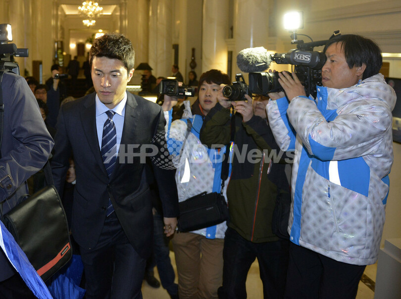 朴はサポーターが持っていた領土保有のメッセージが書かれた紙を取っただけであり、計画性のある行動ではなかった事を主張していたが、IOCの規律委員会は、朴の行動がIOCの禁じる「政治的表現」であったとの判断を下した。(c)AFP