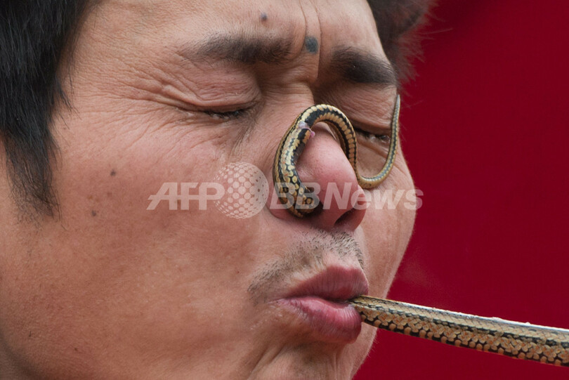 ニュース ライフ こぼれ話 へび年ではありますが…痛すぎるパフォーマンス、北京 2013年2月14日 8:24 発信地:北京/中国 [ 中国・台湾 中国 ] このニュースをシェア ‹ › ❮ 5/13 ❯ 中国・北京(Beijing)の地壇(Temple of Earth)公園で開催されている春節の縁日で、ヘビを鼻から口へと通すパフォーマー(2013年2月11日撮影)。(c)AFP/Ed Jones 画像作成中 ! 【2月14日 AFP】中国・北京(Beijing)の地壇(Temple of Earth)公園で開催されている春節の縁日で、ヘビを鼻から口へと通すパフォーマー。(c)AFP ライフ 一覧へ> メディア・報道関係・法人の方向け 写真・動画 購入のお問合せ>