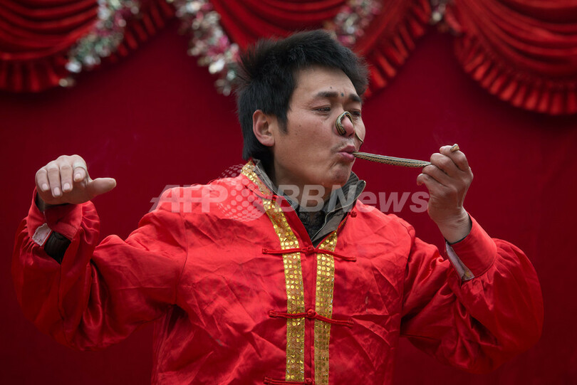 ニュース ライフ こぼれ話 へび年ではありますが…痛すぎるパフォーマンス、北京 2013年2月14日 8:24 発信地:北京/中国 [ 中国・台湾 中国 ] このニュースをシェア ‹ › ❮ 3/13 ❯ 中国・北京(Beijing)の地壇(Temple of Earth)公園で開催されている春節の縁日で、ヘビを鼻から口へと通すパフォーマー(2013年2月11日撮影)。(c)AFP/Ed Jones 画像作成中 ! 【2月14日 AFP】中国・北京(Beijing)の地壇(Temple of Earth)公園で開催されている春節の縁日で、ヘビを鼻から口へと通すパフォーマー。(c)AFP ライフ 一覧へ> メディア・報道関係・法人の方向け 写真・動画 購入のお問合せ>