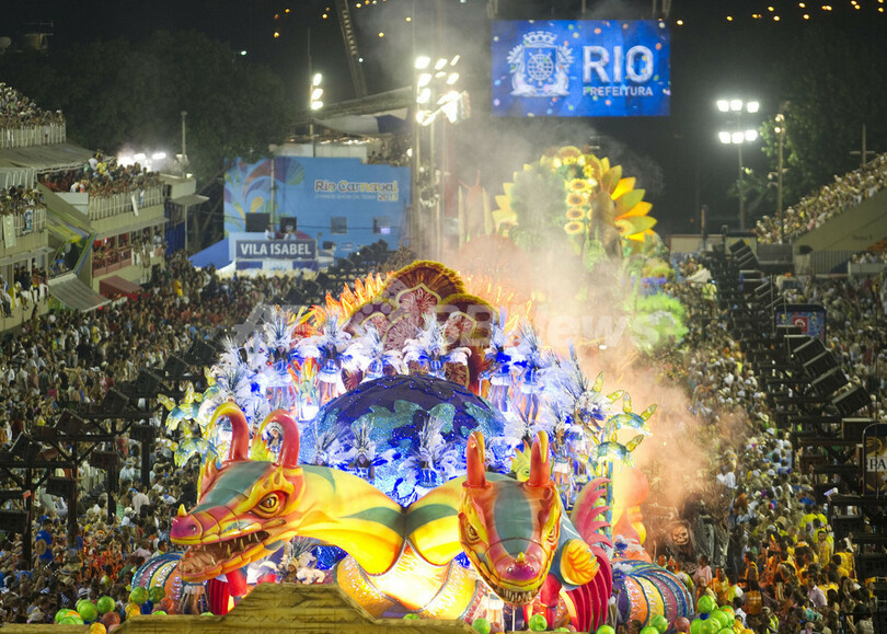 主会場のサンボドロモ(Sambodrome)で2夜にわたって繰り広げられたサンバコンテストでは、40人の審査員が「振り付け」「音楽」「ダンス」「創造性」などを審査した。 65年の歴史を持つ地元リオデジャネイロのビライザベルは、ダンサー3800人、豪華な山車7台で臨み、299.7点を獲得。2位に入った人気チーム「ベイジャ・フロル(Beija-Flor)」(299.4点)をわずか0.3点差という接戦で制した。(c)AFP