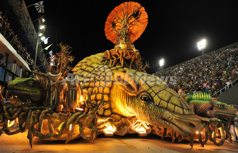 主会場のサンボドロモ(Sambodrome)で2夜にわたって繰り広げられたサンバコンテストでは、40人の審査員が「振り付け」「音楽」「ダンス」「創造性」などを審査した。 65年の歴史を持つ地元リオデジャネイロのビライザベルは、ダンサー3800人、豪華な山車7台で臨み、299.7点を獲得。2位に入った人気チーム「ベイジャ・フロル(Beija-Flor)」(299.4点)をわずか0.3点差という接戦で制した。(c)AFP