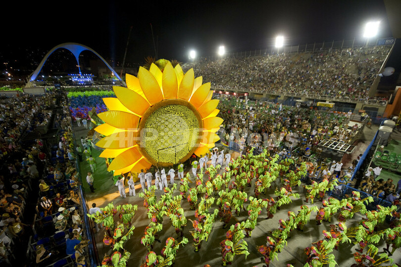 主会場のサンボドロモ(Sambodrome)で2夜にわたって繰り広げられたサンバコンテストでは、40人の審査員が「振り付け」「音楽」「ダンス」「創造性」などを審査した。 65年の歴史を持つ地元リオデジャネイロのビライザベルは、ダンサー3800人、豪華な山車7台で臨み、299.7点を獲得。2位に入った人気チーム「ベイジャ・フロル(Beija-Flor)」(299.4点)をわずか0.3点差という接戦で制した。(c)AFP
