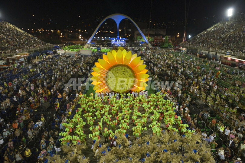 主会場のサンボドロモ(Sambodrome)で2夜にわたって繰り広げられたサンバコンテストでは、40人の審査員が「振り付け」「音楽」「ダンス」「創造性」などを審査した。 65年の歴史を持つ地元リオデジャネイロのビライザベルは、ダンサー3800人、豪華な山車7台で臨み、299.7点を獲得。2位に入った人気チーム「ベイジャ・フロル(Beija-Flor)」(299.4点)をわずか0.3点差という接戦で制した。(c)AFP