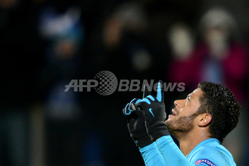 後半24分に先制点を挙げ歓喜するゼニト・サンクトペテルブルクのフッキ(Hulk、2013年2月14日撮影)。(c)AFP/KIRILL KUDRYAVTSEV
