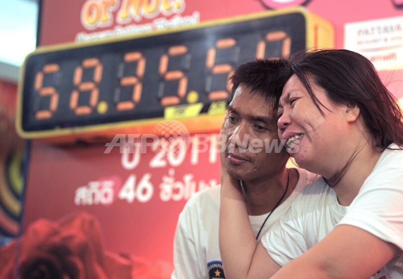 ニュース ライフ こぼれ話 「世界一長いキス」で新記録、58時間35分 タイの夫妻 2013年2月15日 8:21 発信地:パタヤ/タイ [ アジア・オセアニア タイ ] このニュースをシェア ‹ › ❮ 3/5 ❯ タイ・パタヤ(Pattaya)で行われた「世界で一番長いキス」を競う大会で優勝したティラナラット夫妻(2013年2月14日撮影)。(c)AFP/PORNCHAI KITTIWONGSAKUL 画像作成中 ! 【2月15日 AFP】バレンタインに合わせタイ・パタヤ(Pattaya)で行われていた「世界で一番長いキス」を競う大会で14日、ティラナラット夫妻が、これまでのギネス世界記録(50時間25分1秒)を大きく上回る58時間35分58秒のタイムで優勝、賞金10万バーツ(約31万円)と2つのダイヤの指輪を獲得した。(c)AFP ライフ 一覧へ> メディア・報道関係・法人の方向け 写真・動画 購入のお問合せ>