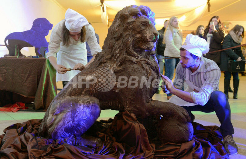 【2月15日 AFP】ウクライナのリビウ(Lviv)で14日、バレンタインデーを記念した第6回チョコレート・フェスティバルが開催され、職人が巨大なチョコレートからライオン像を制作してみせた。使用したチョコレートは200キログラムという。(c)AFP