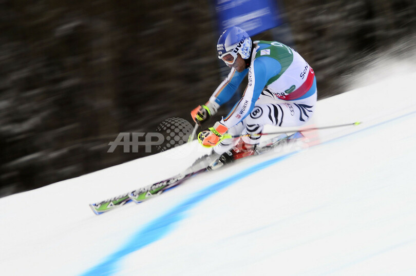 2位には0秒81差でオーストリアのマルセル・ヒルシャー(Marcel Hirscher)が、3位には1秒75差でイタリアのマンフレード・モエルッグ(Manfred Moelgg)が入った。(c)AFP