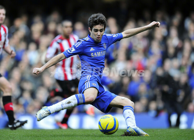 シュートを狙うチェルシーのオスカル(Oscar dos Santos Emboaba Junior、2013年2月17日撮影)。(c)AFP/GLYN KIRK