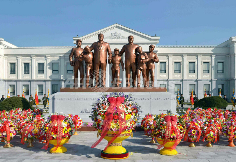 ニュース 政治・経済 北朝鮮で銅像除幕式、金正恩第1書記ら出席 2013年2月18日 9:56 発信地:平壌/北朝鮮 [ 韓国・北朝鮮 北朝鮮 ] このニュースをシェア ‹ › ❮ 2/2 ❯ 写真は、北朝鮮の首都平壌(Pyongyang)の万景台革命学院(Mangyongdae Revolutionary School)で披露された金日成(Kim Il-Sung)主席(左から2人目)と金正日(Kim Jong-Il)総書記(右から2人目)の銅像(2013年2月16日撮影)。(c)AFP PHOTO/KCNA VIA KNS 画像作成中 ! 【2月18日 AFP】北朝鮮の首都平壌(Pyongyang)の万景台革命学院(Mangyongdae Revolutionary School)で16日、金日成(Kim Il-Sung)主席と金正日(Kim Jong-Il)総書記の銅像の除幕式が行われ、金正恩(Kim Jong-Un)第1書記の他、朝鮮労働党幹部らが出席した。(c)AFP 政治・経済 一覧へ> メディア・報道関係・法人の方向け 写真・動画 購入のお問合せ>