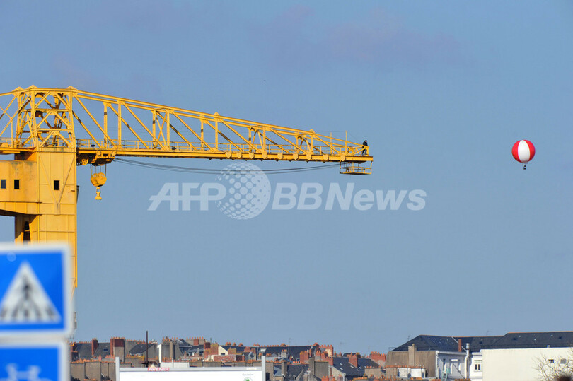 【2月18日 AFP】フランス西部ナント(Nantes)で15日朝、幼い息子との面会を禁じられた父親(42)が造船所の巨大クレーンの上によじ登り、裁判所命令の撤回を求めた。この父親は、裁判所命令が解かれるまでクレーン上に居座ると宣言しており、「(息子の)ブノワには2年も父親がいない」と書かれた大きな横断幕を掲げたまま、17日になっても降りてくる気配を見せていない。