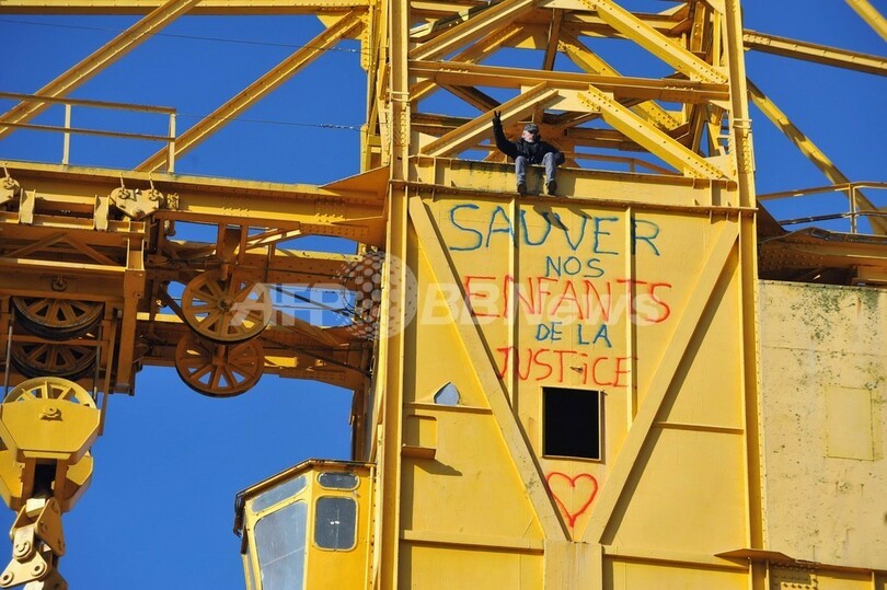 【2月18日 AFP】フランス西部ナント(Nantes)で15日朝、幼い息子との面会を禁じられた父親(42)が造船所の巨大クレーンの上によじ登り、裁判所命令の撤回を求めた。この父親は、裁判所命令が解かれるまでクレーン上に居座ると宣言しており、「(息子の)ブノワには2年も父親がいない」と書かれた大きな横断幕を掲げたまま、17日になっても降りてくる気配を見せていない。