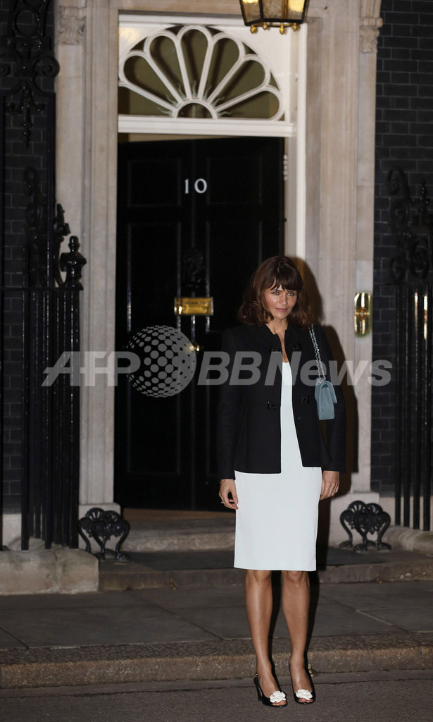 会場となった首相官邸には、デザイナーのマノロ・ブラニク(Manolo Blahnik)やドナテラ・ヴェルサーチ(Donatella Versace)、スティーブン・ジョーンズ(Stephen Jones)をはじめ、英国ファッション協会のハロルド・ティルマン(Harold Tillman)会長、PPRのフランソワ・アンリ=ピノー(Francois-Henri Pinault)会長兼CEOと女優のサルマ・ハエック(Salma Hayek)夫妻、モデルのヘレナ・クリステンセン(Helena Christensen)などファッション界を盛り上げる華やかなゲストが続々と姿を見せた。(c)AFP