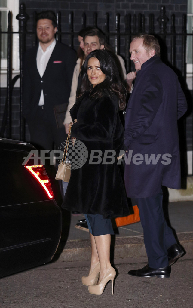 会場となった首相官邸には、デザイナーのマノロ・ブラニク(Manolo Blahnik)やドナテラ・ヴェルサーチ(Donatella Versace)、スティーブン・ジョーンズ(Stephen Jones)をはじめ、英国ファッション協会のハロルド・ティルマン(Harold Tillman)会長、PPRのフランソワ・アンリ=ピノー(Francois-Henri Pinault)会長兼CEOと女優のサルマ・ハエック(Salma Hayek)夫妻、モデルのヘレナ・クリステンセン(Helena Christensen)などファッション界を盛り上げる華やかなゲストが続々と姿を見せた。(c)AFP
