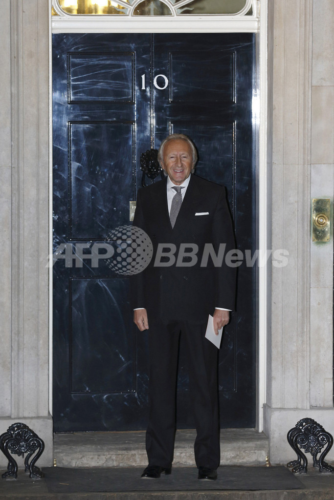 会場となった首相官邸には、デザイナーのマノロ・ブラニク(Manolo Blahnik)やドナテラ・ヴェルサーチ(Donatella Versace)、スティーブン・ジョーンズ(Stephen Jones)をはじめ、英国ファッション協会のハロルド・ティルマン(Harold Tillman)会長、PPRのフランソワ・アンリ=ピノー(Francois-Henri Pinault)会長兼CEOと女優のサルマ・ハエック(Salma Hayek)夫妻、モデルのヘレナ・クリステンセン(Helena Christensen)などファッション界を盛り上げる華やかなゲストが続々と姿を見せた。(c)AFP