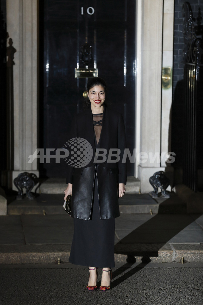 会場となった首相官邸には、デザイナーのマノロ・ブラニク(Manolo Blahnik)やドナテラ・ヴェルサーチ(Donatella Versace)、スティーブン・ジョーンズ(Stephen Jones)をはじめ、英国ファッション協会のハロルド・ティルマン(Harold Tillman)会長、PPRのフランソワ・アンリ=ピノー(Francois-Henri Pinault)会長兼CEOと女優のサルマ・ハエック(Salma Hayek)夫妻、モデルのヘレナ・クリステンセン(Helena Christensen)などファッション界を盛り上げる華やかなゲストが続々と姿を見せた。(c)AFP