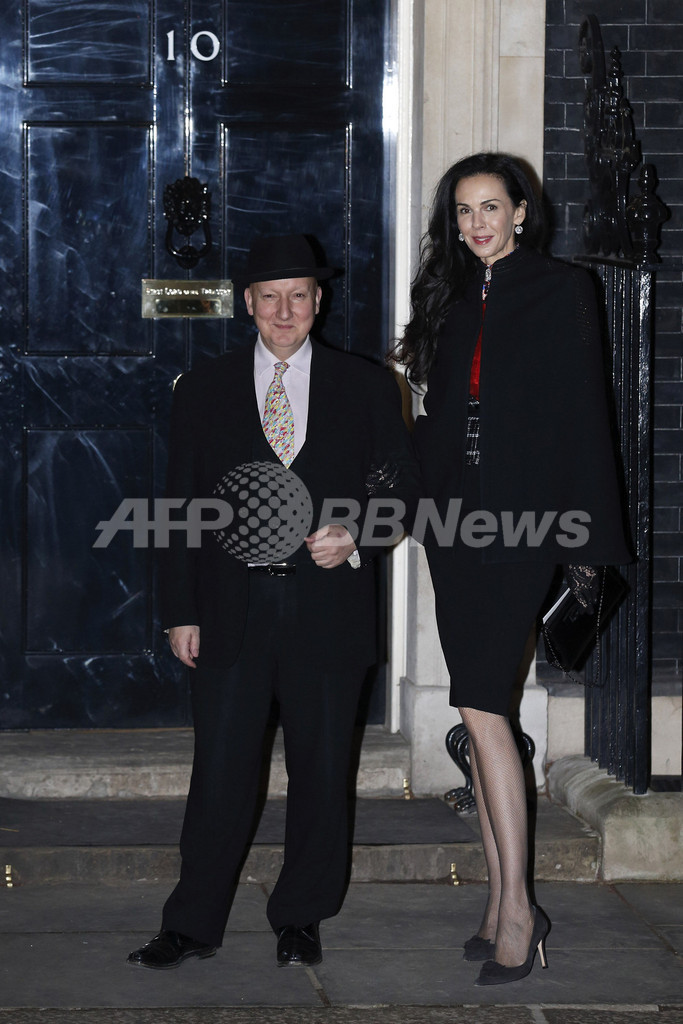 会場となった首相官邸には、デザイナーのマノロ・ブラニク(Manolo Blahnik)やドナテラ・ヴェルサーチ(Donatella Versace)、スティーブン・ジョーンズ(Stephen Jones)をはじめ、英国ファッション協会のハロルド・ティルマン(Harold Tillman)会長、PPRのフランソワ・アンリ=ピノー(Francois-Henri Pinault)会長兼CEOと女優のサルマ・ハエック(Salma Hayek)夫妻、モデルのヘレナ・クリステンセン(Helena Christensen)などファッション界を盛り上げる華やかなゲストが続々と姿を見せた。(c)AFP