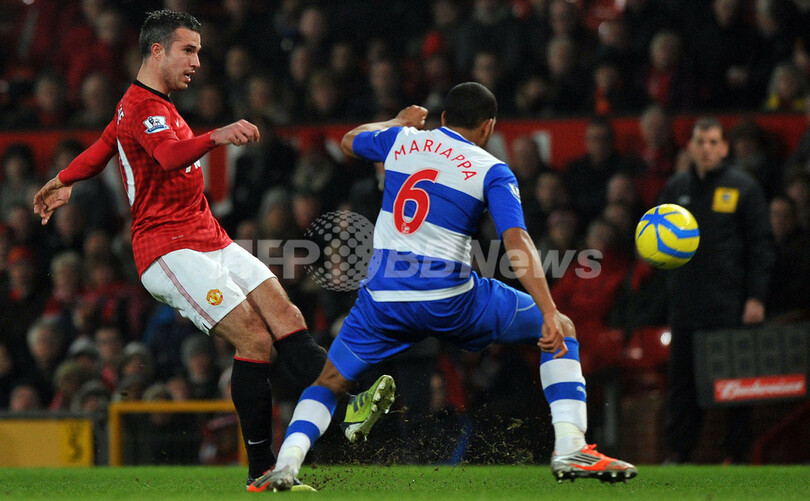 得点を狙うマンチェスター・ユナイテッドのロビン・ファン・ペルシー(Robin Van Persie、2013年2月18日撮影)。(c)AFP/PAUL ELLIS