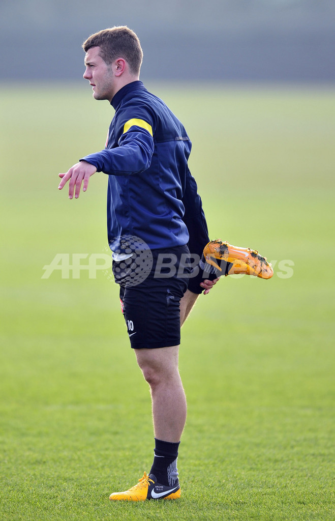 練習に臨むアーセナルのジャック・ウィルシャー(Jack Wilshere、2013年2月18日撮影)。(c)AFP/GLYN KIRK